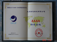 2010年1月22日,我公司榮獲中國物流與采購聯(lián)合會審定的“AAAA級綜合服務(wù)型物流企業(yè)”資質(zhì)。