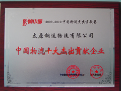 2010年6月24日,我公司在“第四屆中國(蘇州)國際物流與供應(yīng)鏈合作發(fā)展高峰論壇"暨"影響中國2009--2010中國物流杰出貢獻獎"表彰活動,被授予“中國物流十大杰出貢獻企業(yè)”榮譽稱號。